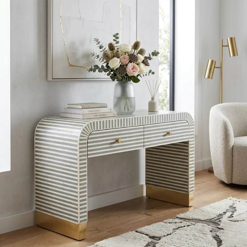 Bone Inlay 2 Drawer Waterfall Style Desk / Console – Optical Design