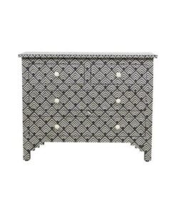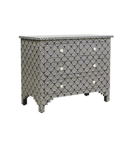 Bone Inlay Chest of 4 Drawers in Black Geometric Design, Dresser, Commode, Bone Inlay Furniture, Chest Of Drawers, Handmade, Furniture