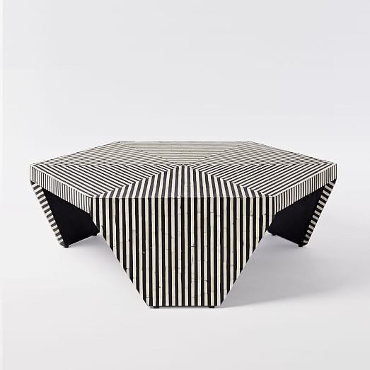 Bone inlay hexagan shape optical srtip pattern coffee table center table