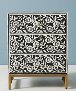 Bone Inlay Chest of 6 Drawers in Leaf Pattern in Grey, Bone Inlay Dresser, Bone Inlay Commode VAS-09